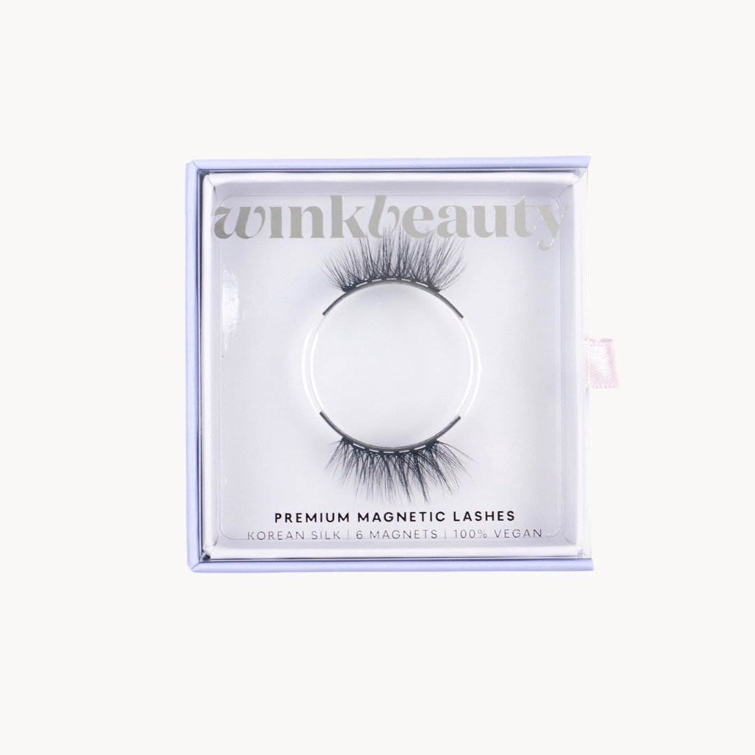 Unsere Wimpernhälften haben 6 Mini-Magnete auf jedem Streifen! Diese Anzahl von Magneten verleiht dem Band außerdem eine Leichtigkeit und Flexibilität, die keine anderen magnetischen Wimpern auf dem Markt garantieren. Sie befestigen die Wink Lashes Wimpern an einem magnetischen Eyeliner. Sie werden wahrscheinlich bis zu 16 Stunden halten!